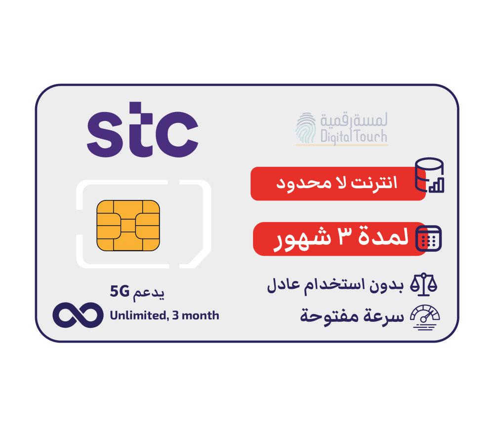 كويك نت لا محدود لمدة 3 أشهر استمتع بأقوى باقات الانترنت من STC ، الباقة التي تمنحك استخدامًا مفتوحًا بالكامل دون سياسة استخدام عادل، مع تغطية قوية على شبكات 3G/4G/5G، وقدرة تشغيل مثالية على الجوال والراوتر.